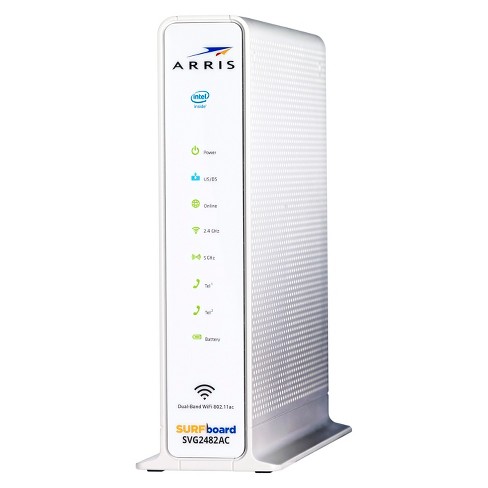 Arris surfboard 24x8 docsis 3 0 cable modem plus ac1750 dual band wi fi router and xfinity telephone 1 gbps max speed certified for comcast xfinity only svg2482ac renewed 119 99 157 works and looks like new and backed by the amazon renewed guarantee.